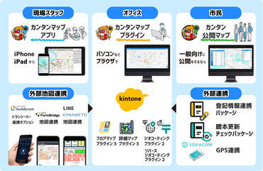 カンタンマッププラグインを中心とした、kintoneと地図を連携したサービスの開発・販売 地図活用コンサルティング 自治体や民間企業向け研修・講演など
